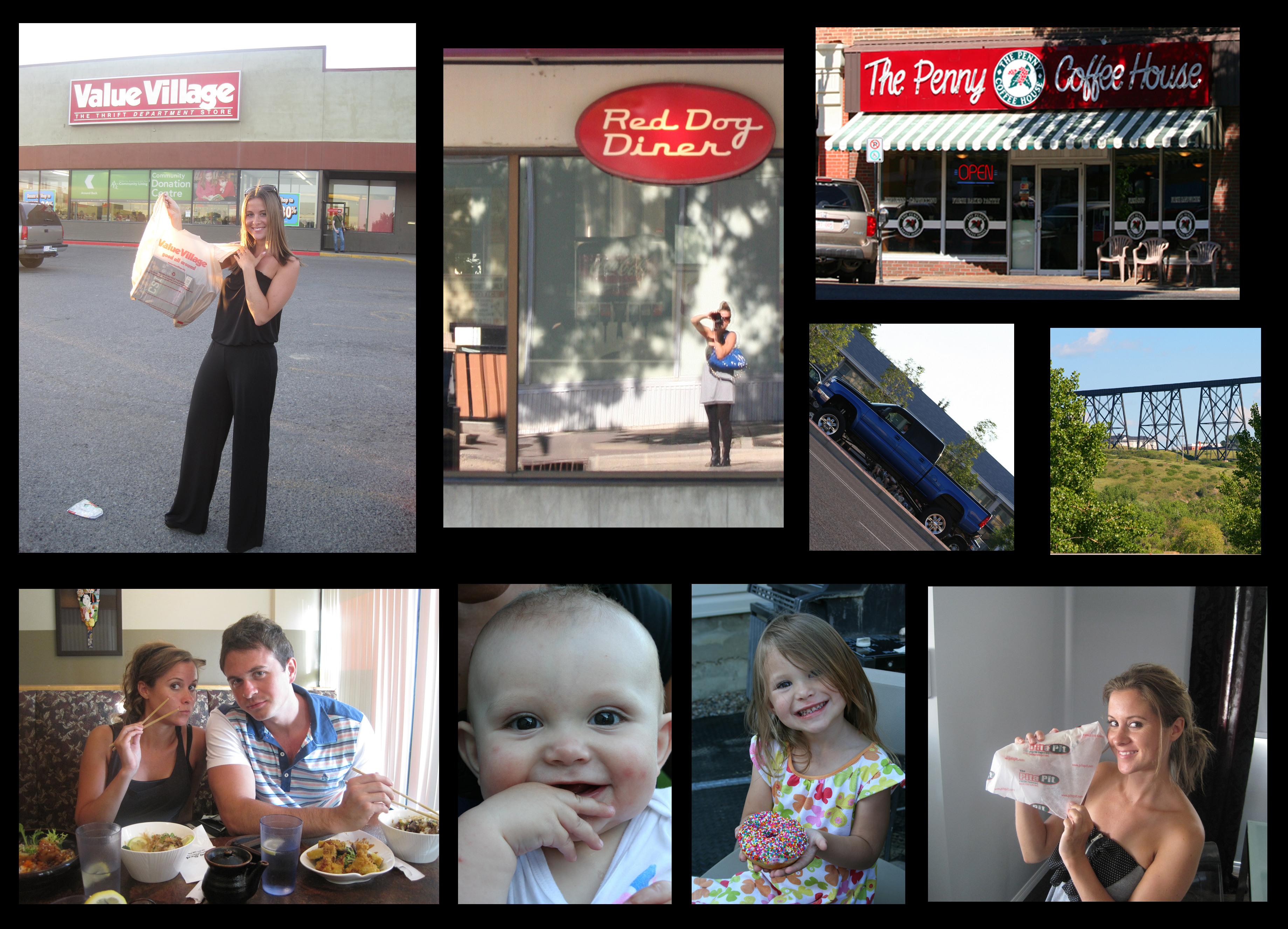 While in Lethbridge I had to check out the giant second-hand store Value Village (I also love searching for a bargain!), poutine at Red Dog Diner, coffee at the Penny Coffee House, giant jacked up 4×4 trucks, the famous high level bridge, sushi nights with Wayne’s family, my chubby nephew Daxon, my beautiful niece Danika, aaaaand Pita Pit….sooo not fair that we don’t have one!!