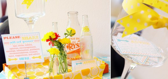 Just like the one-of-a-kind friend she is, she also is one-of-a-kind in style and taste. I had strict instructions that pastels and rattles were not to be seen anywhere, which was totally fine by me! Since Baby Siegel was to be a Summer baby and Maria had mentioned that she would love lemonade to be on the menu, (not to mention that time was running out and I desperately needed a theme to get me inspired), I decided to take lemons and run with it. It turned out to be so much fun!