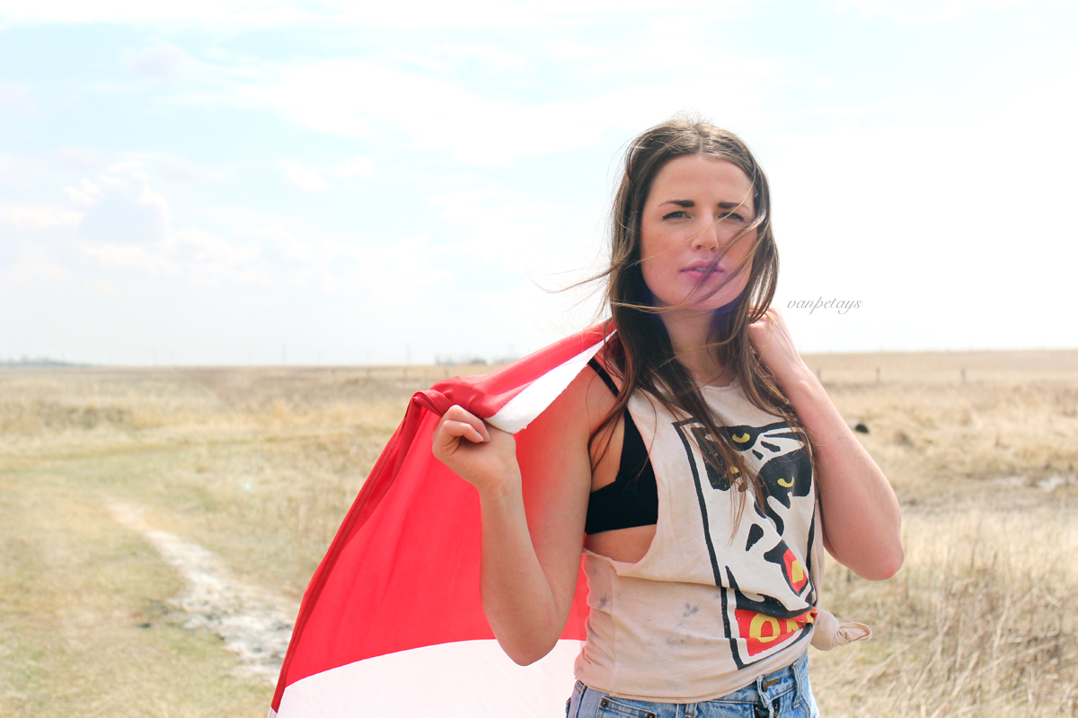 In Canada, when July 1st rolls around we get all patriotic and stuff. Painting our faces red and white, eating poutine for breakfast, lunch and supper, and tuning into our favourite radio stations to listen to the most requested song of the day, “Oh, Canada.” I’ll have to say that while all those things get my inner Canadian rage on, nothing beats dressing up your best friend in a red and white flag, stamped with a maple leaf to show true authentic Canadian pride.