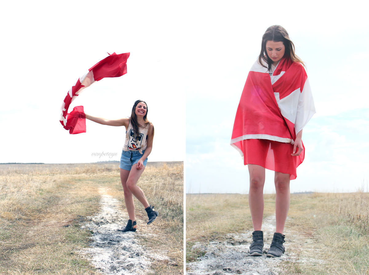 Big thanks to my partner in crime Jec Graham for being a good sport and an amazing model. Add a, “I double doggie dare ya” and she’s game. Another big thanks to Momma Graham for the donation of the flag, because even though we are super patriotic and all that, let’s face it, two broke college kids can’t afford a $60 flag. #shouldabeenagolddigger